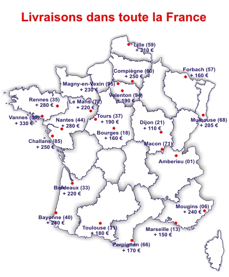 Les prix comprennent les formalités d’importation en France, le transport par camion jusqu’à l’un de nos dépôts: Macon (71) ou Ambérieu (01), les compétences pour nos services, les documents nécessaires pour l’immatriculation en France que nous garantissons à 100% (le cas échéant nous reprenons votre véhicule au prix d’achat).